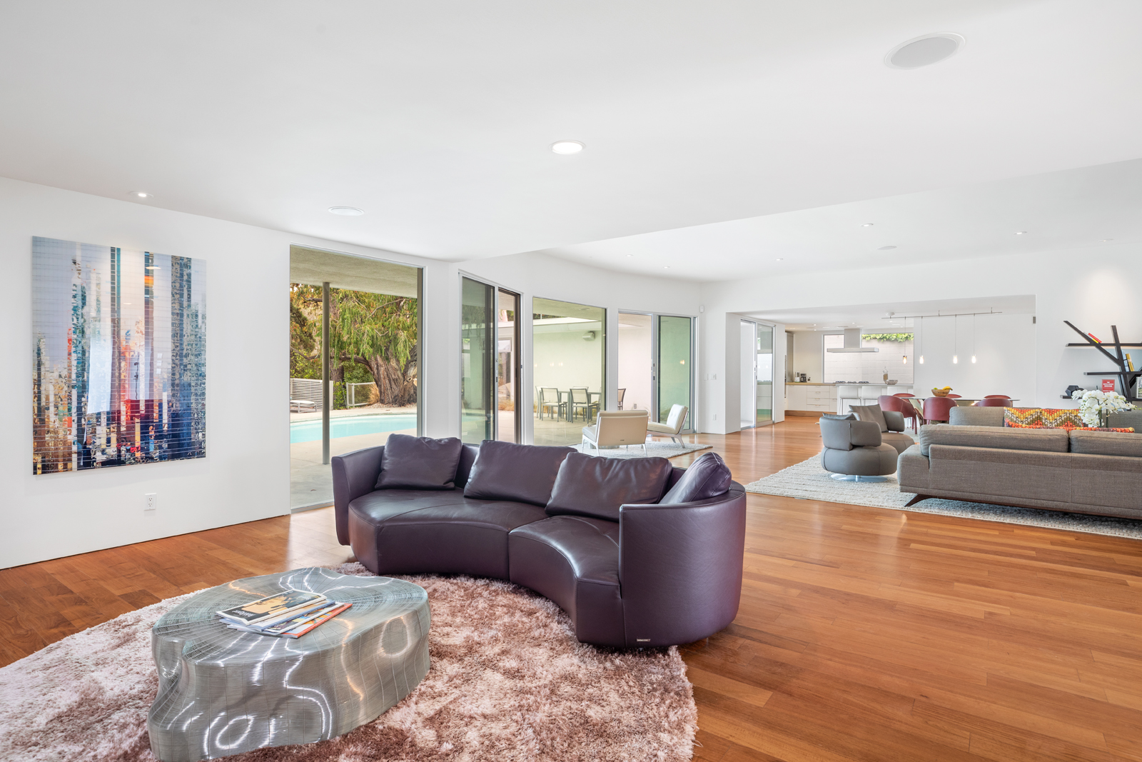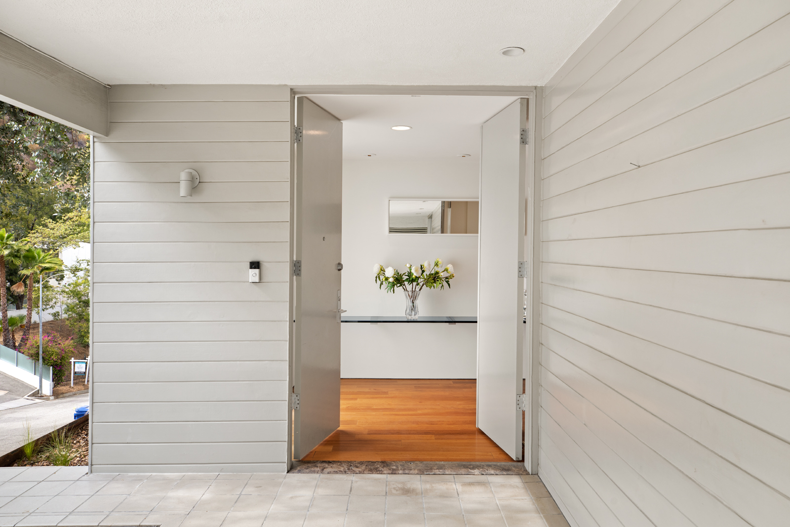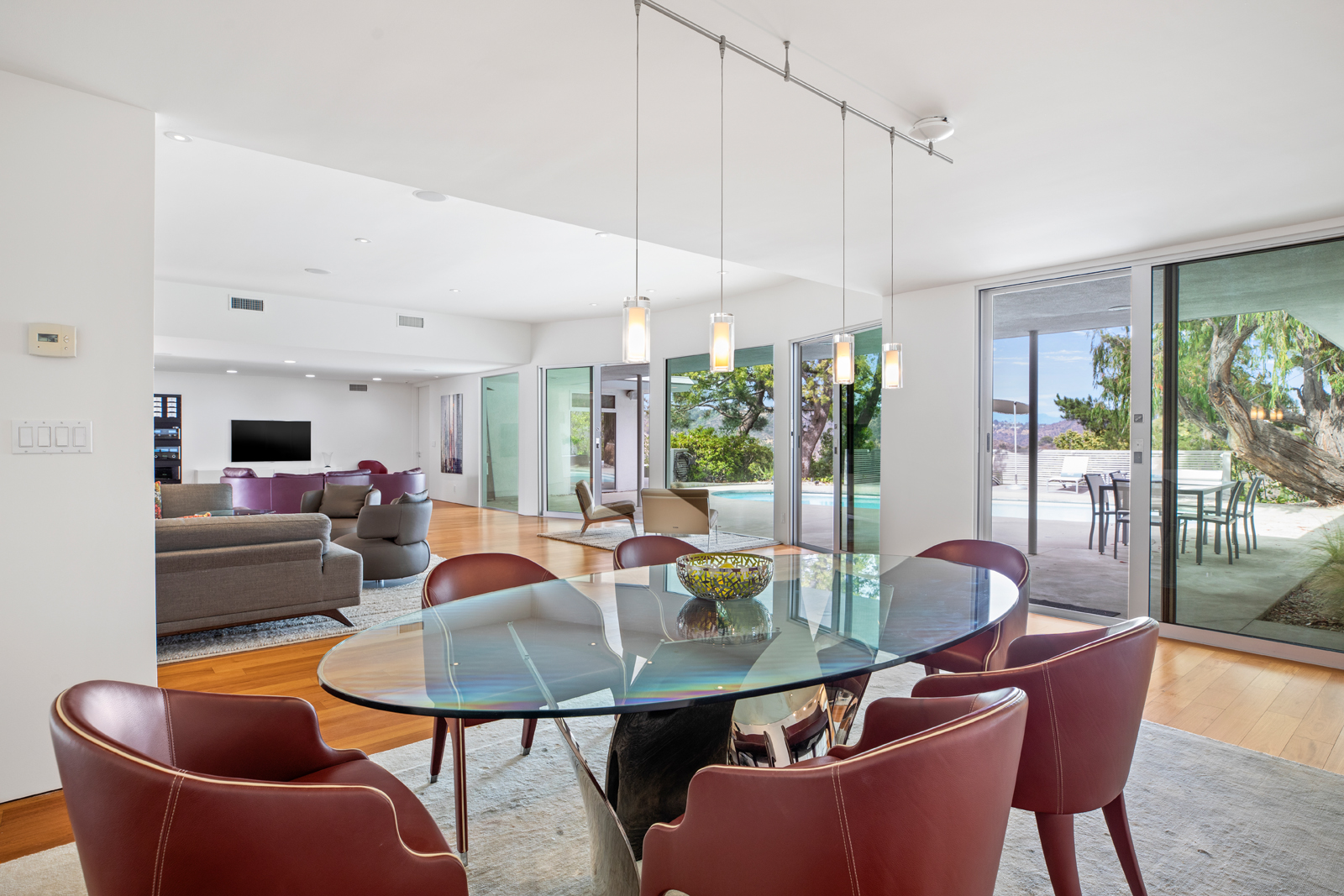 Light-filled, Mid-Century residence by California architect Charles Wong, A.I.A., perched near the top of Stone Canyon Road in Bel Air on a generous, 12, 000+ sf lot with pool, spa, fire pit and reservoir views from most rooms. The bright entry seamlessly flows to the living room with fireplace, media room area, dining room and modern kitchen with stainless steel appliances, all with warm, teak wood floors and ample room for your special art collection. Fleetwood sliding doors lead to large entertaining terrace, pool, sun terrace, spa, fire pit and exquisite views. Large, main bedroom with terrace and modern bathroom w dual vanities, walk-in shower and generous bath. Two additional bedrooms and baths complete this warm, modern retreat surrounded by nature yet minutes away from all that LA has to offer.
