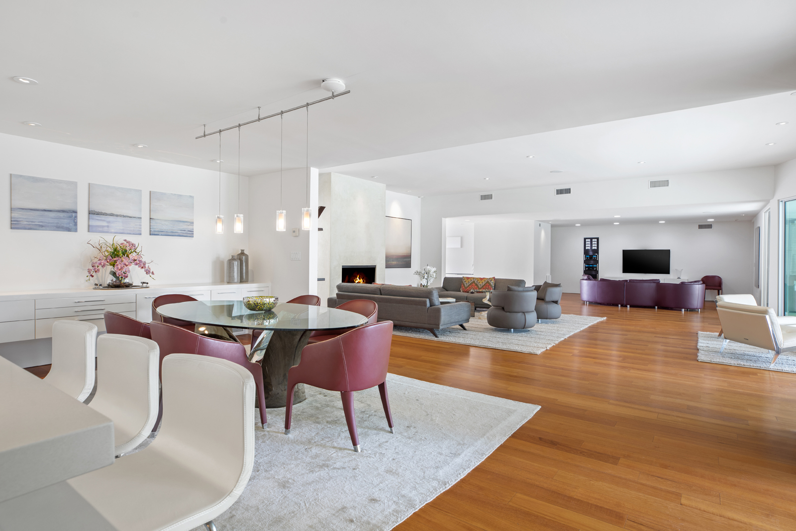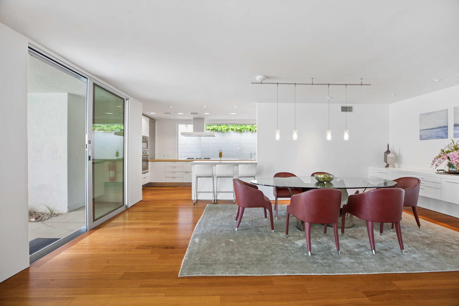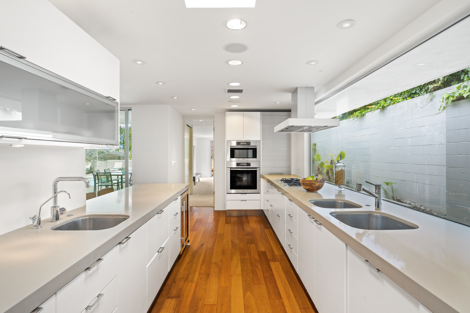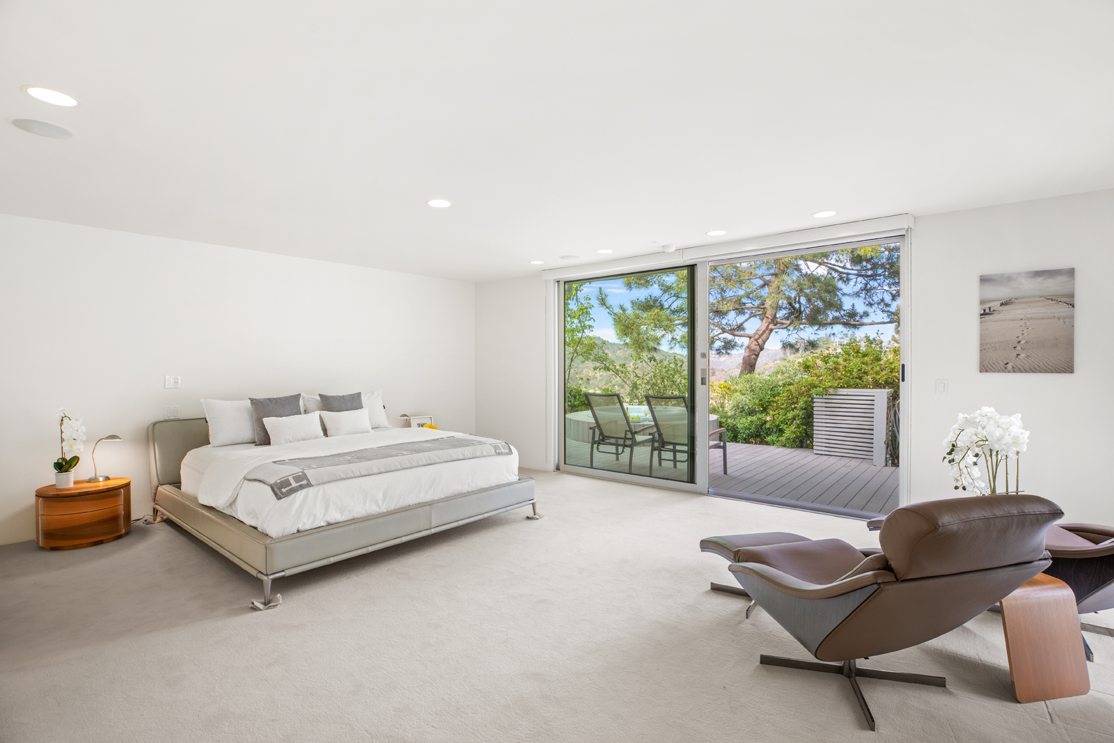 Light-filled, Mid-Century residence by California architect Charles Wong, A.I.A., perched near the top of Stone Canyon Road in Bel Air on a generous, 12, 000+ sf lot with pool, spa, fire pit and reservoir views from most rooms. The bright entry seamlessly flows to the living room with fireplace, media room area, dining room and modern kitchen with stainless steel appliances, all with warm, teak wood floors and ample room for your special art collection. Fleetwood sliding doors lead to large entertaining terrace, pool, sun terrace, spa, fire pit and exquisite views. Large, main bedroom with terrace and modern bathroom w dual vanities, walk-in shower and generous bath. Two additional bedrooms and baths complete this warm, modern retreat surrounded by nature yet minutes away from all that LA has to offer.