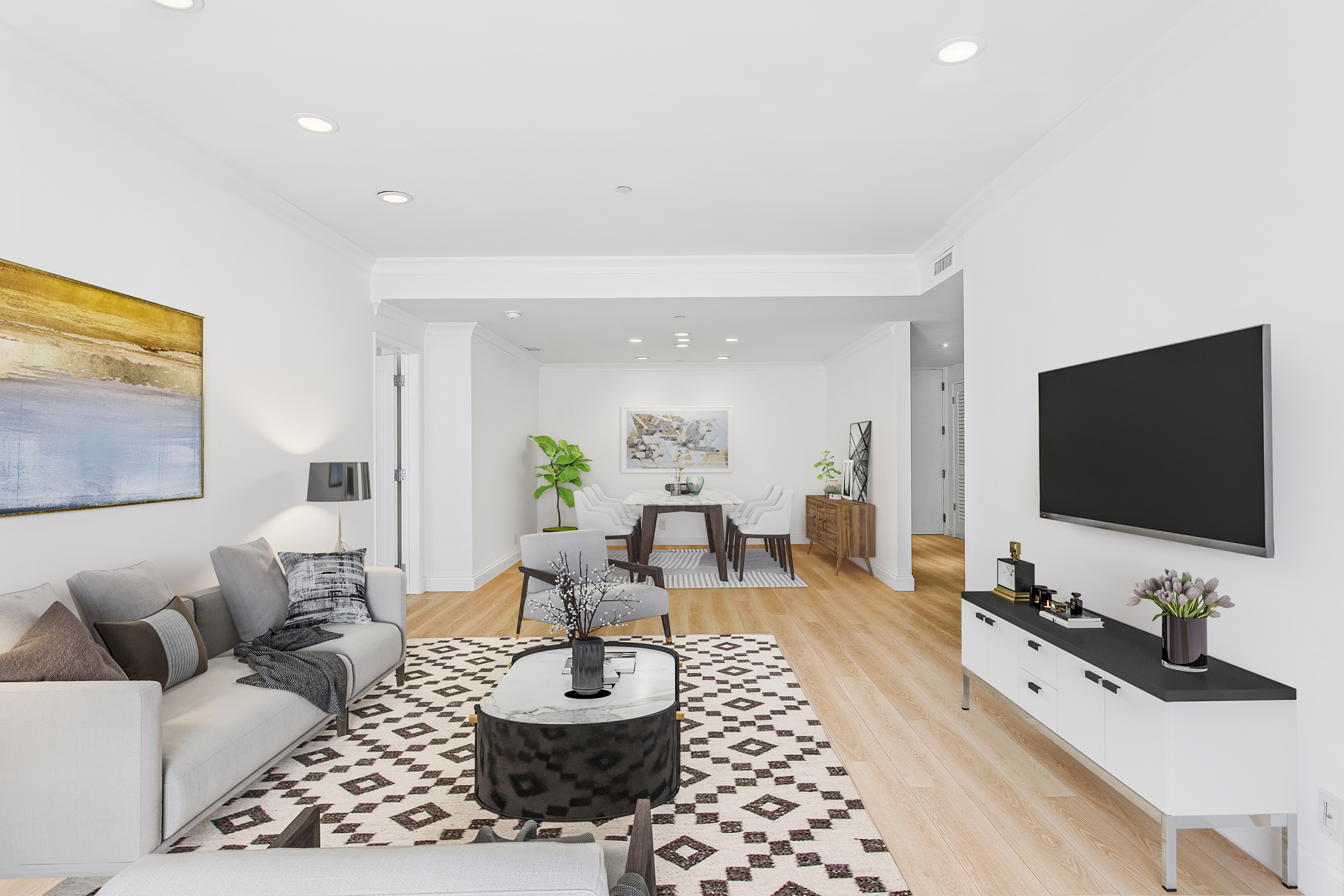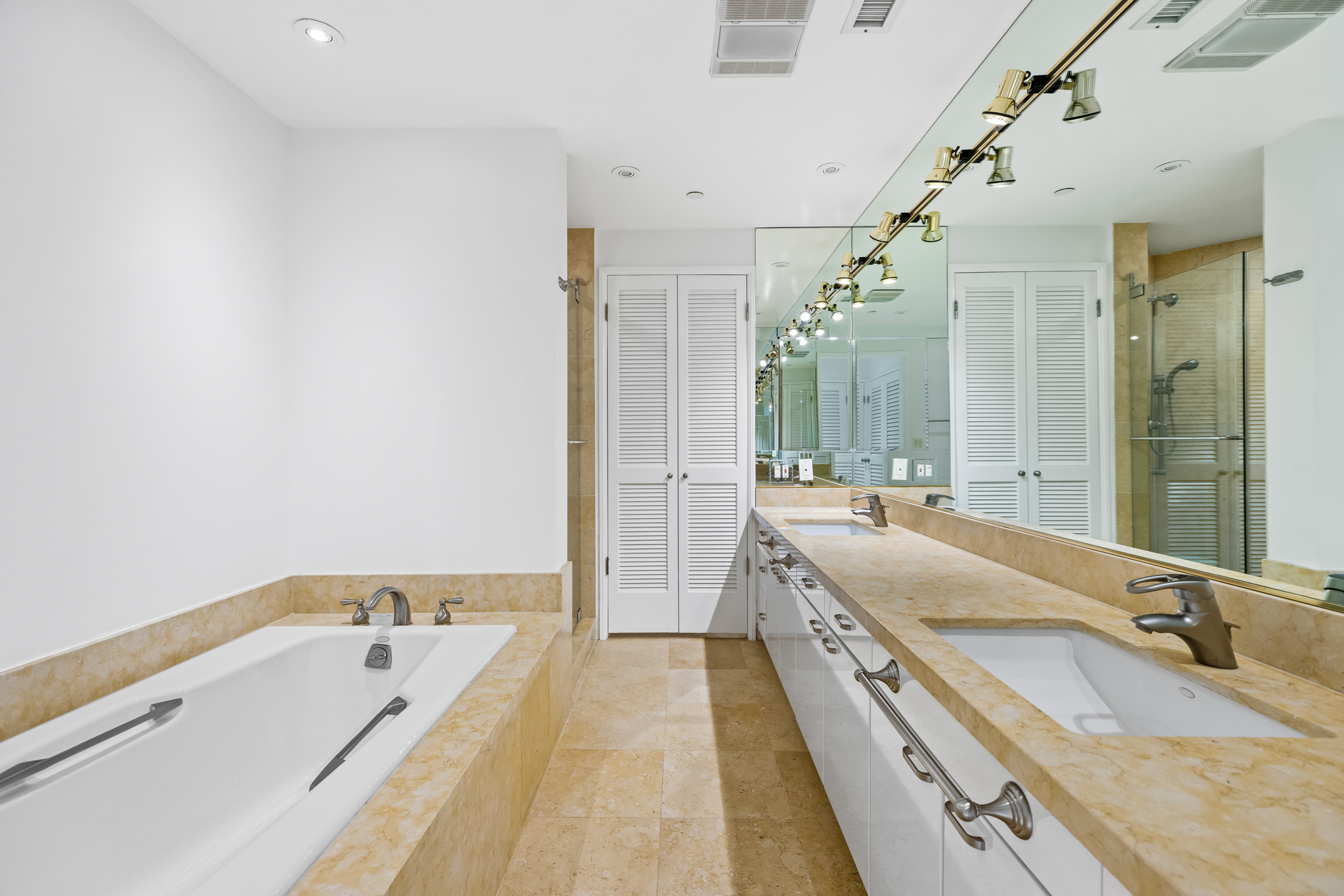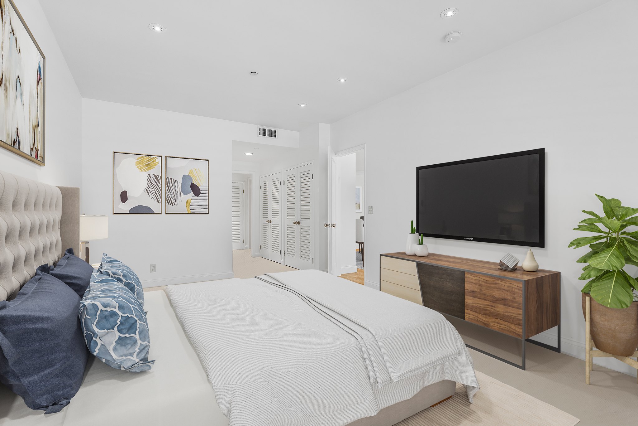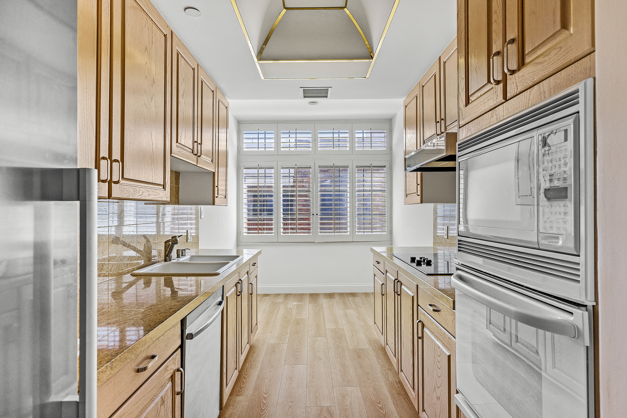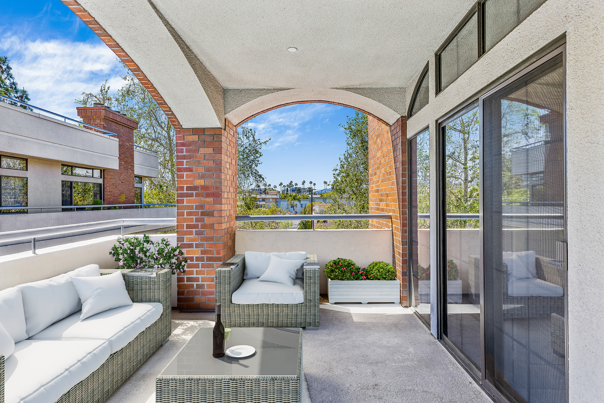 Fantastic Penthouse residence in exceptional, full-service building with 24-hour security, doorman, concierge, fitness center and large pool in superb Beverly Hills location. Bright and spacious 2 bedroom | 2 bath penthouse offers updated wood floors throughout the living areas, great eat-in kitchen and large dining terrace. The grand master suite is complete with lots of closet space, a luxurious soaking tub, separate shower and separate water closet with Toto toilet. The second bedroom offers a walk-in closet and built-ins and luxurious bathroom. Laundry room with washer & dryer. Direct TV and internet included. Tenant pays for electric. Easy to show! Garage parking for 2 cars, side by side and close to the elevator.