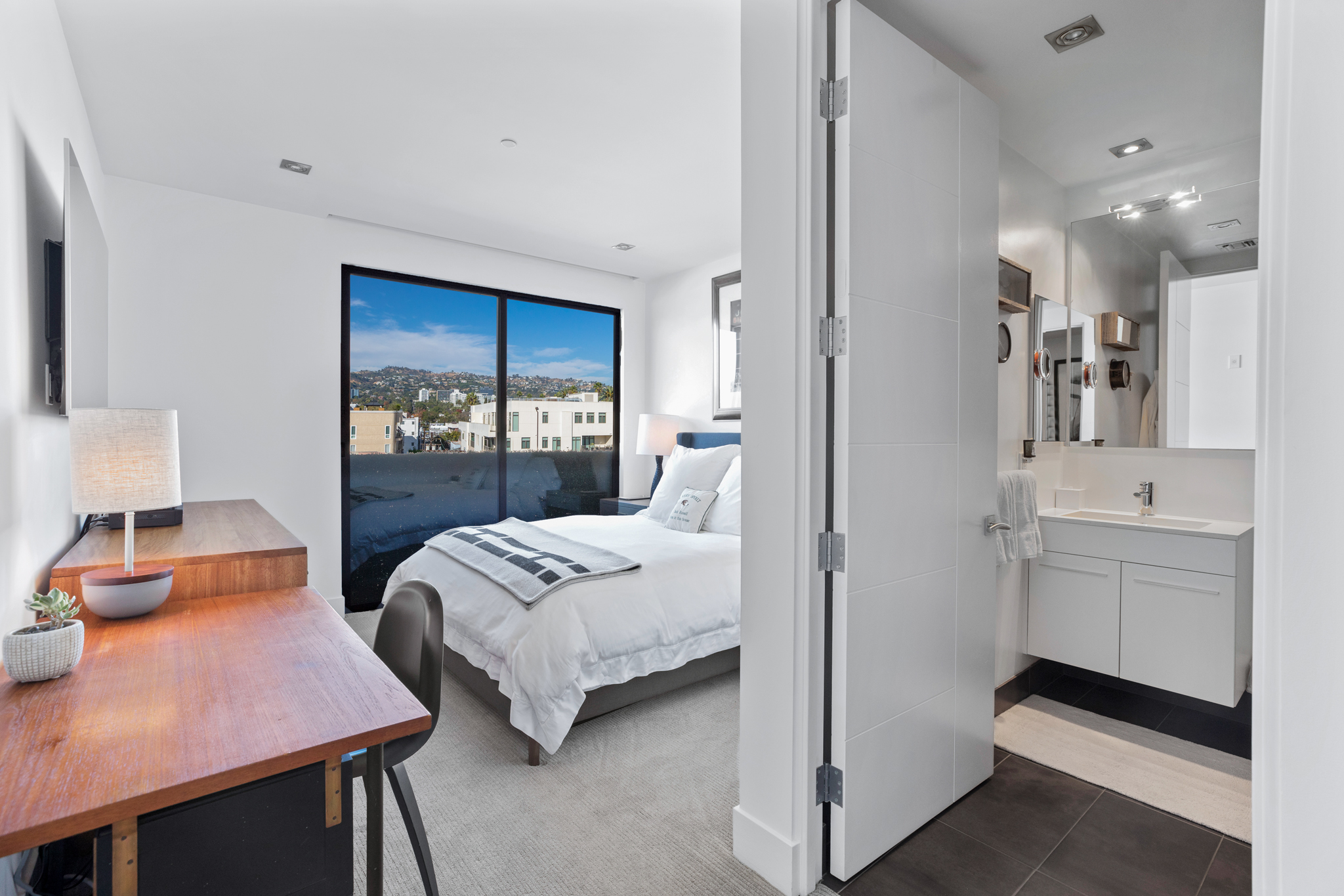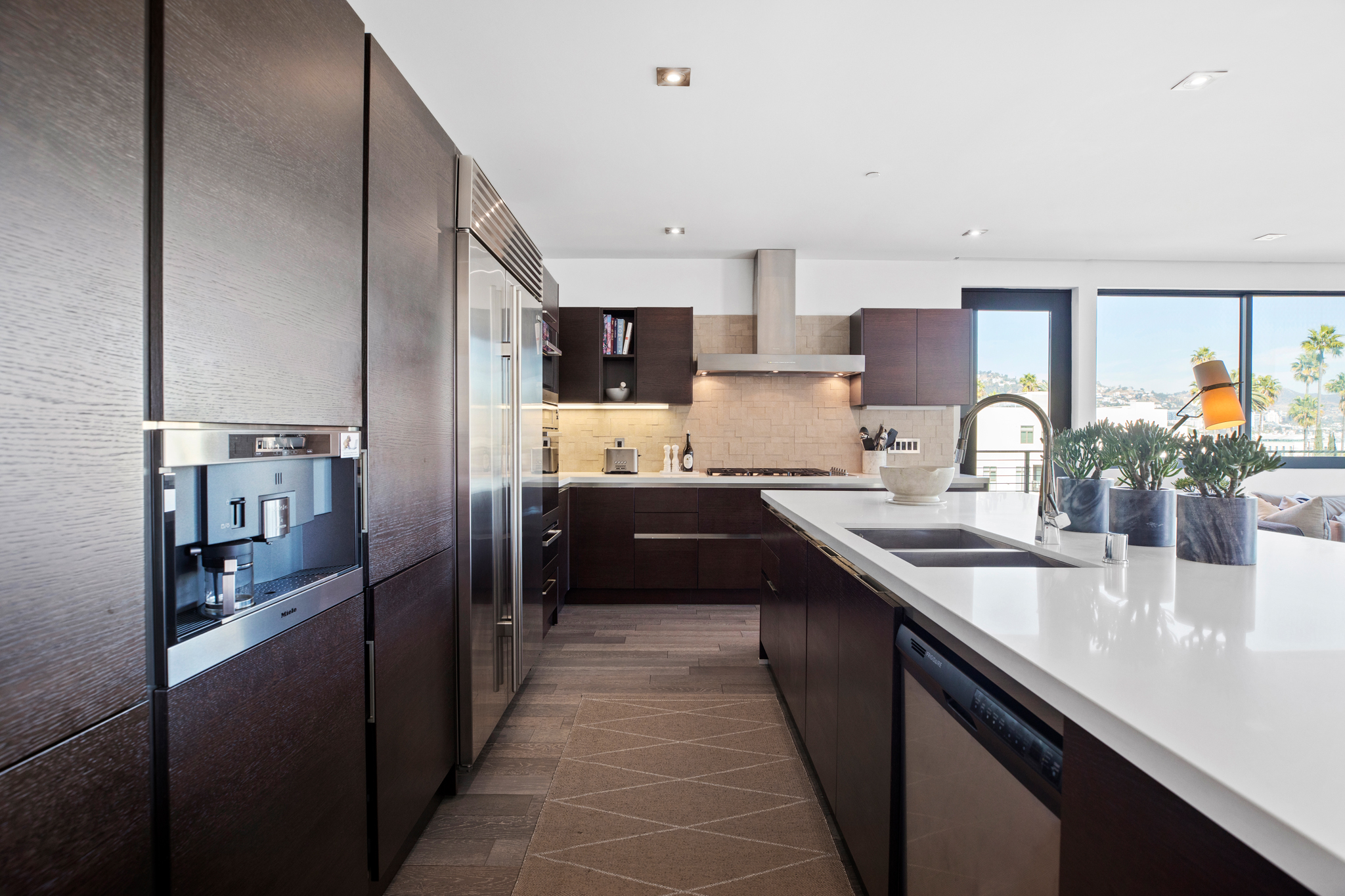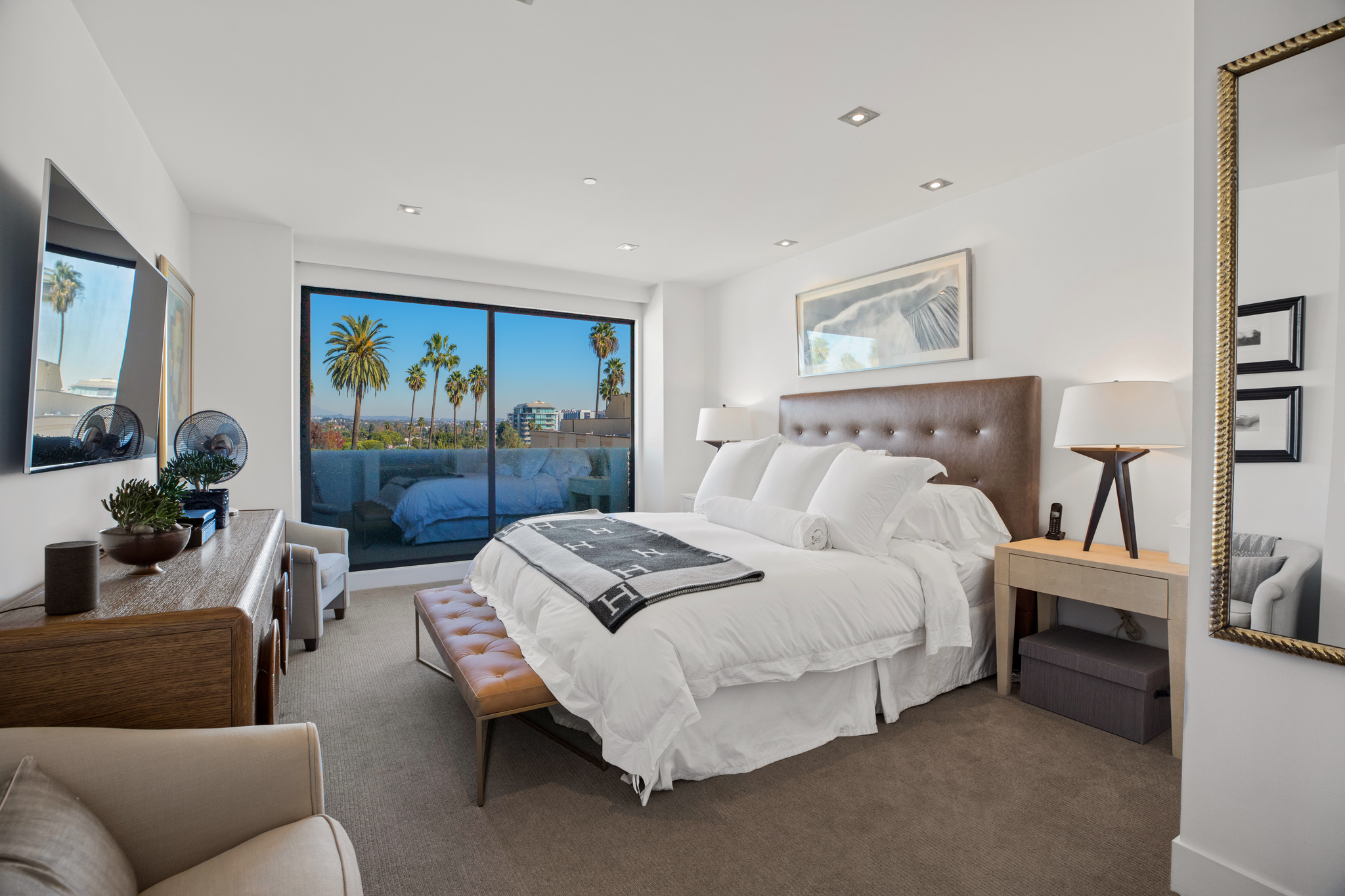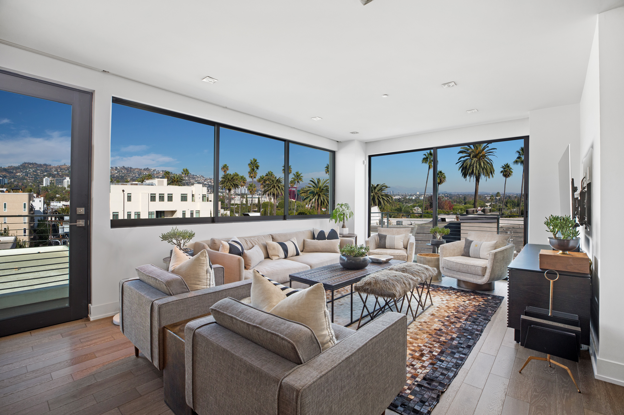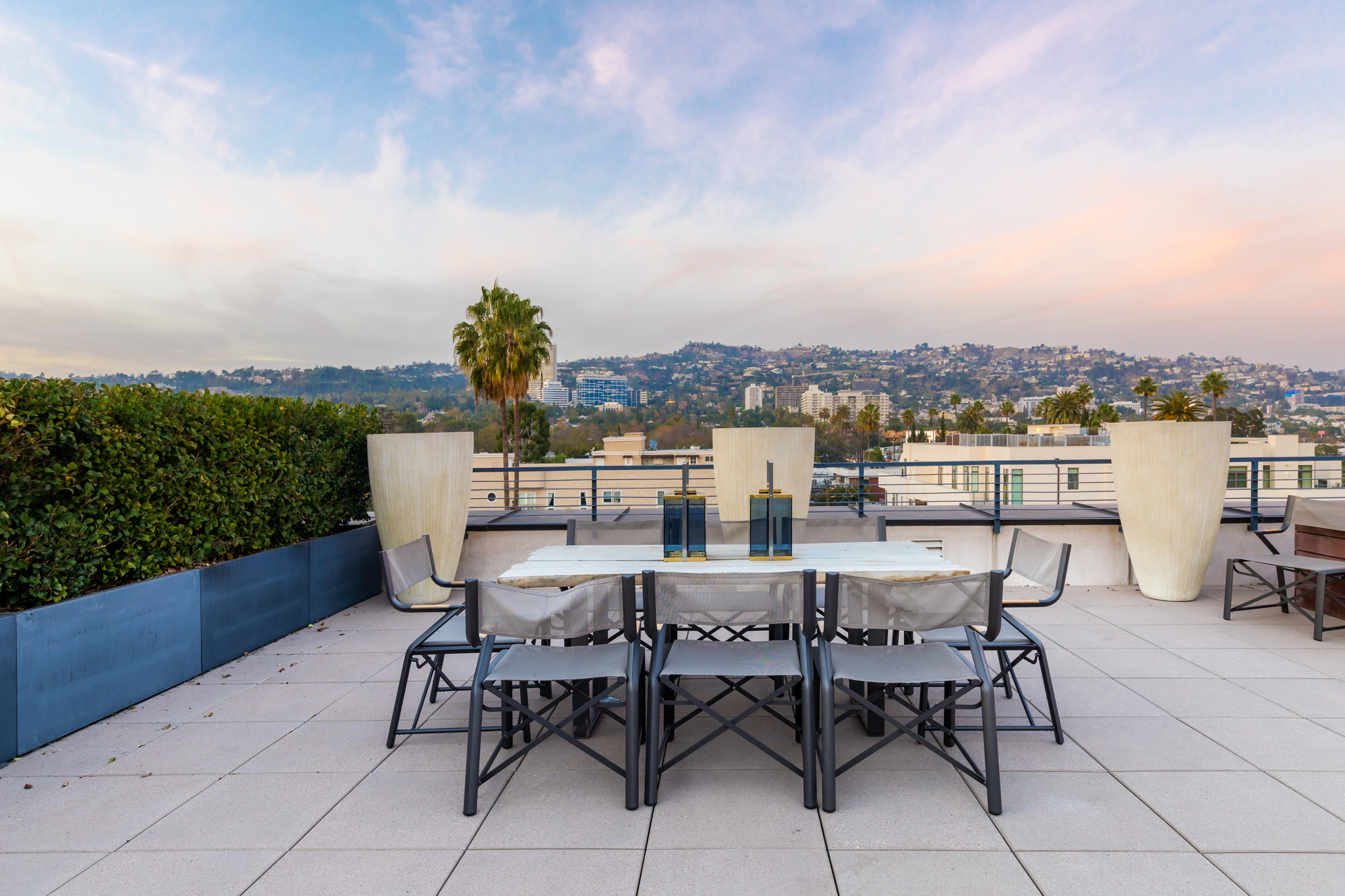 Modern Sophisticated Penthouse in exceptional location with open floor plan, perfect for entertaining and outdoor dining. Hardwood flooring in living areas, automated shades and expansive views from Beverly Hills to Downtown LA and beyond. Spacious gourmet kitchen with oversized center island and top of the line appliances, italian cabinetry throughout and floor-to-ceiling windows and sliding doors. Beautifully appointed bathrooms. In addition, entertain in style or meditate on your private and very generous size rooftop deck with spa. A world-class property in Beverly Hills, only 1 block from shopping and restaurants.